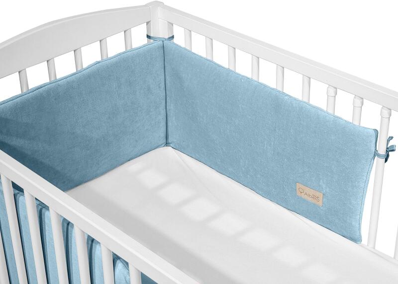 Az egyszínű pamutbársonyból készült bölcsőgátló gyönyörű kiegészítője minden kisbaba kiságyának. Tento a puha és gyengéd anyag maximális kényelmet és védelmet nyújt a kicsiknek.