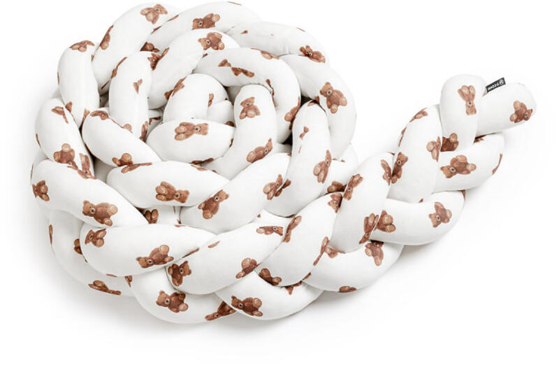 Stílusos fonott rácsvédő fehér színben, aranyos maci motívummal, amely csodálatosan kiegészíti minden gyerekszobát. Nemcsak gyengéd és tiszta megjelenést kölcsönöz, hanem megbízható védelmet nyújt a kiságy vagy ágy kemény rácsai ellen, és segít szigetelni a hideg faltól. A fonatot egyszerűen helyezze el a kiságy belső oldalán, és gondoskodik arról, hogy a baba biztonságban legyen az éjszakai forgolódás során. Nagyobb ágyban fészek funkciót is betölthet, és puha kivitelének köszönhetően játékként vagy kedves dekorációként is használható. A csomag tartalmaz egy praktikus, nem szőtt textíliából készült tokot, amely ideális utazáshoz és könnyű tároláshoz. A rácsvédő újszülött kortól alkalmas. Tulajdonságok:anyag 100% pamuttöltet PES golyók (üreges szál), antisztatikus és antibakteriálismodern designpraktikus csomagolásbankímélő mosás 40°C-on, mosás után rázza fel, formázza és hagyja szabadon száradnikészült CsehországbanMéretek:  20x180 cm 20x220 cm 20x360 cm